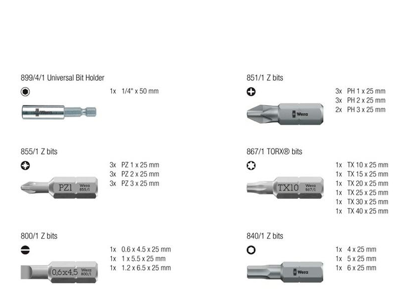 conjunto bits wera com extensor 1 sb (kit 30pcs)