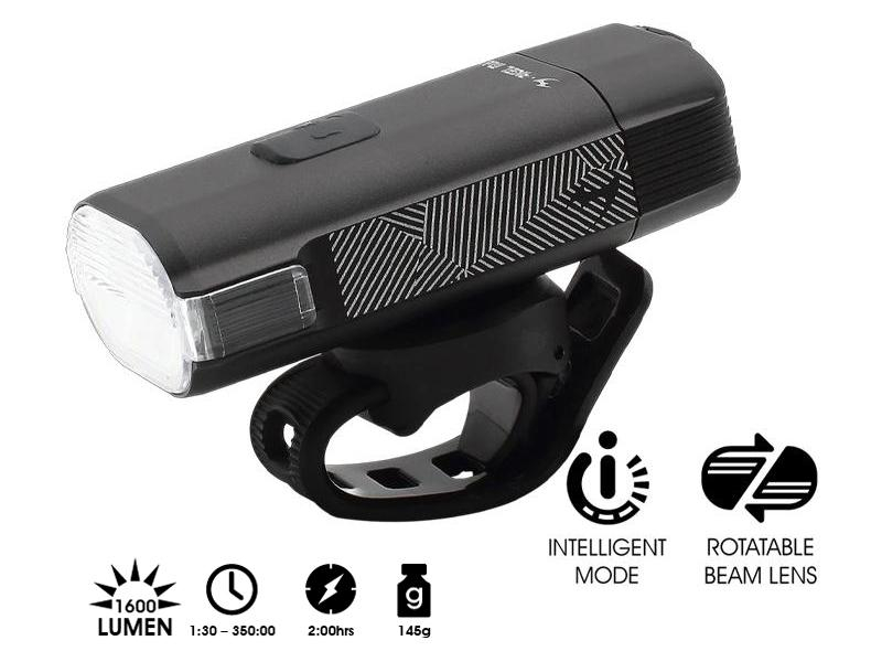 Luz frontal 1600 LUMEN com controlo remoto sem fios, modo inteligente e corpo CNC (145g). Carregamento USB-C bidirecional, autonomia até 350h, 36h luz continua. Inclui suportes e acessórios.