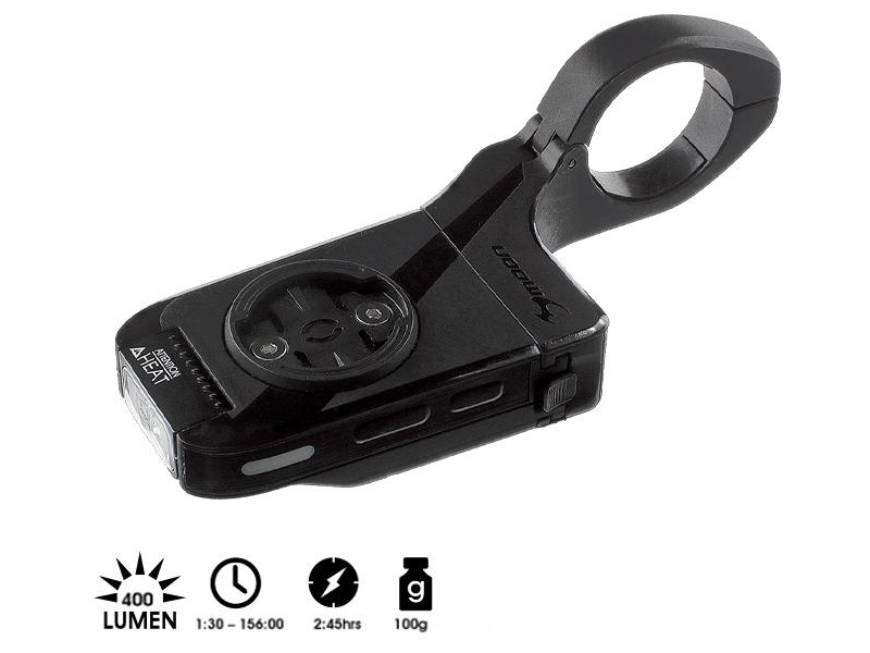 Luz frontal 400 LUMEN com feixe ajustável, modos Boost, Steady, Flash e SOS, memória de modo e sistema USB-C. Autonomia até 31h. 100g. Inclui suportes e acessórios.